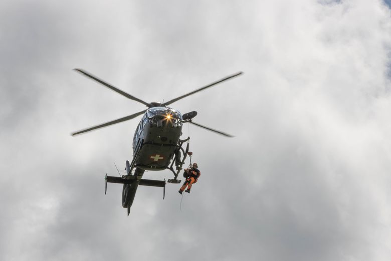 In Zweisimmen übten die Verschüttetensuchhunde-Teams das Abseilen am Helikopter.